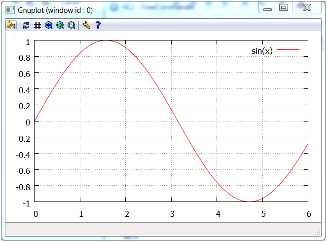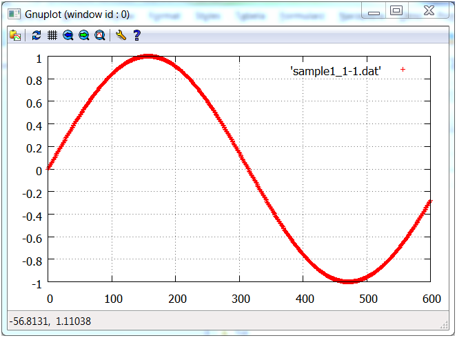 Na dysku zostanie utworzony plik „sample1.plt” z wykresem funkcji sinus, który można obejrzeć przeglądarką Gnuplot.